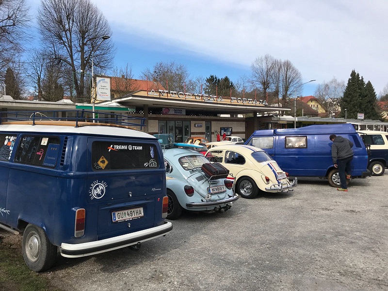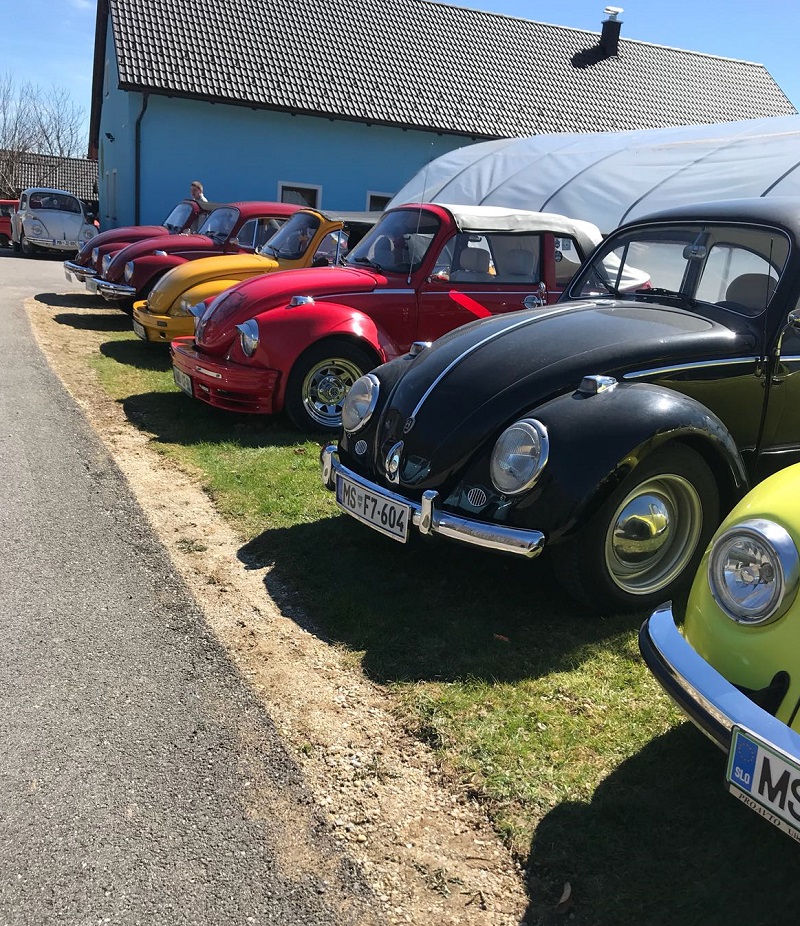 Treffpunkt war Andy´s Bar. Die Sonne lachte vom Himmel - einfach eine Freude! Wir trafen viele Bekannte und Freunde (Es waren fast 50 Teilnehmerfahrzeugen gemeldet, welche bei der ca. 30 km langen Ausfahrt dabei waren.) Zwischenhalt in der Eisdiele. Primos´s Begleitfahrzeug in silber. Einer der vielen Zwischenhalte zu Benzingesprächen und Nahrungs- bzw. Flüssigkeits-Ergänzung :-) :-) :-) ... Auf einer Anhöhe gab es den nächsten Zwischenstop mit Selchwürstel und Livemusik (Ziehharmonika-Musik) Barbara, Manns, Daniela, Peter und Daniel Um ca. 16:30 traten wir die nach Heimreise an. Wir hatten nicht soweit, da wir schon am Ostersonntag zum Thermencampingplatz Radkersburg angereist waren und ... ... erst am Dienstag nach Ostern heimgefahren sind.