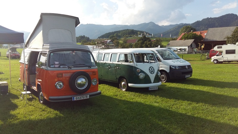 Der KHRT war mit T2b Westi-Bus (Andi), T1-Bus mit Ei (Michl), T5-Bus (Harri) und Käfer mit Eriba (Daniela) dabei.