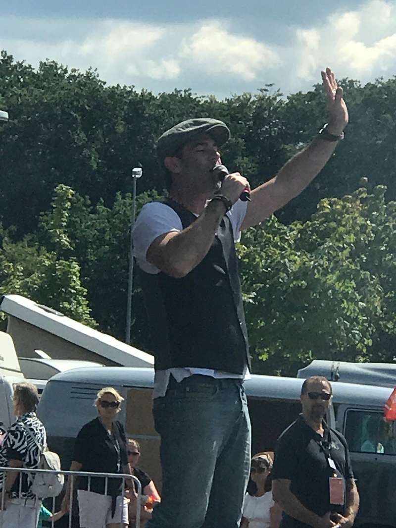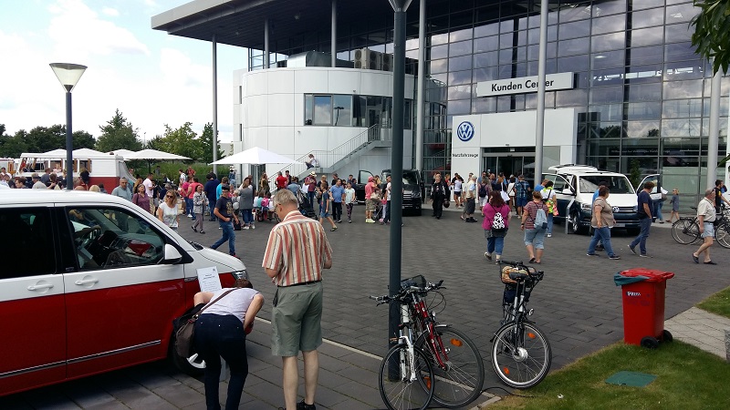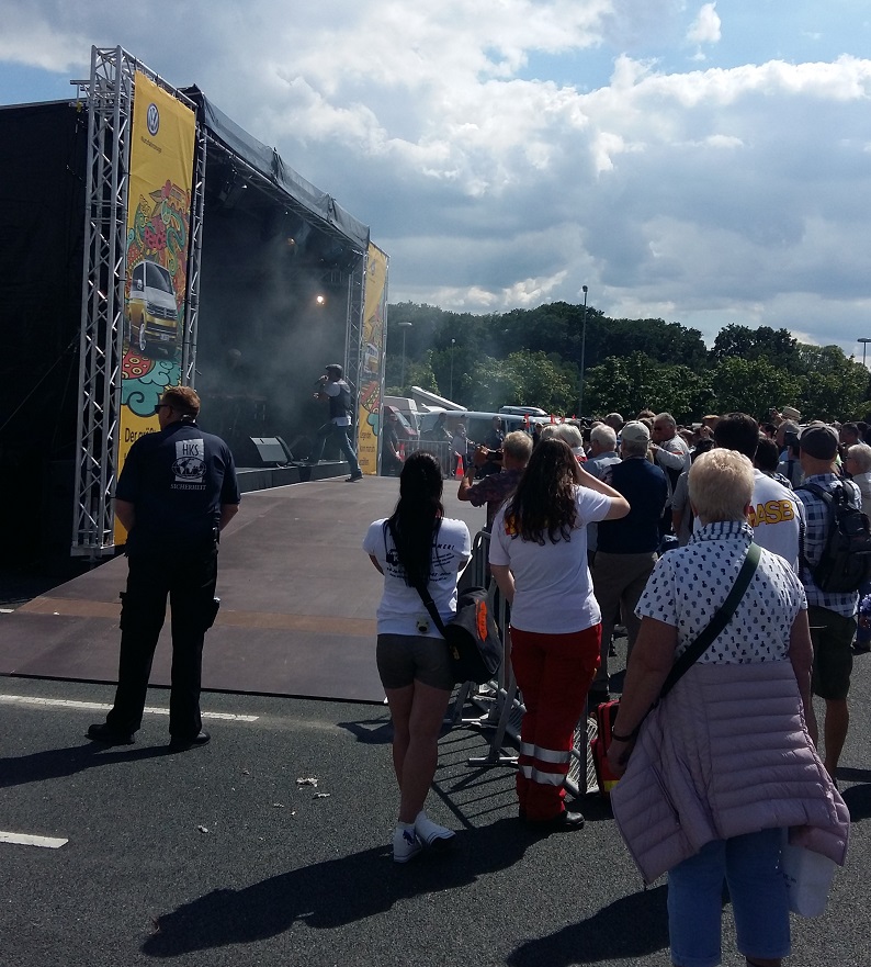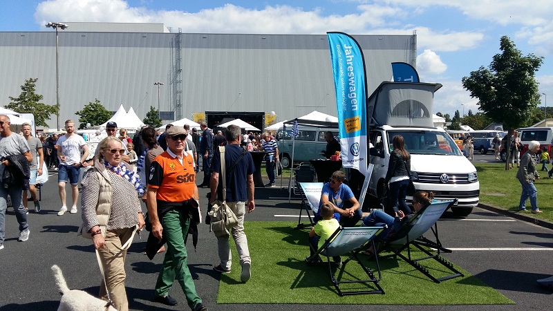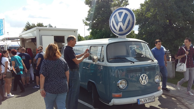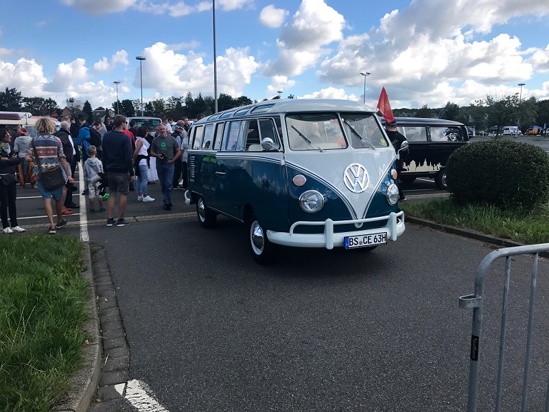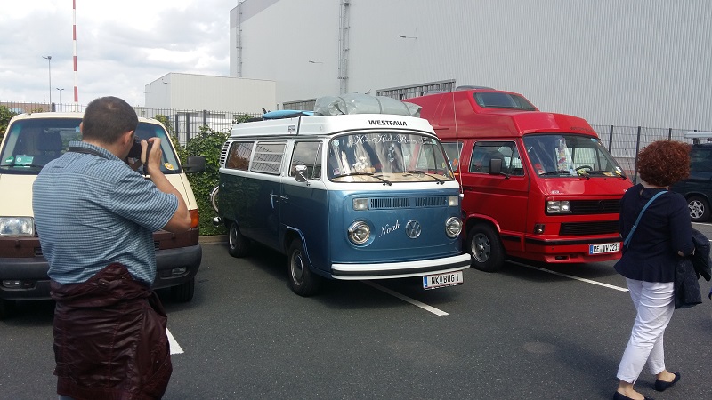 Am Sonntag, den 06. August 2017 gab es im Rahmen des Bulli Summer Festival anlässlich des 70. Geburtstag des VW Bulli einen Konvoi von Wolfsburg nach Hannover (Deutschland). 350 Bullis durften mitfahren - Noah, Daniela, Lissy und Koksi waren dem Konvoi-Team 10 zugeteilt. In Blöcken zu 25 Fahrzeugen ging es im Abstand von 7 Minuten auf große Tour (104 km) Richtung Hannover. Und wieder ein Konvoi-Block bei der Abfahrt. Auf der Strecke machte der "BULLI-Blitzer" von jedem Fahrzeug Erinnerungs-Fotos. Über die Autobahn ging es mit Tempo 80 km/h. Auf jeder Autobahnbrücke zwischen Wolfsburg und Hannover winkten zahlreiche Bulli-Fans dem Konvoi zu. Kennzeichnung der Teilnehmer auf der Windschutzscheibe. Auf dem Parkplatz des VW Nutzfahrzeuge Kundencenter und dem Bulli-Werk Hannover gab es den großen Empfang. Viele Bulli-Liebhaber aus Hannover feierten gemeinsam mit den Konvoi-Teilnehmern. Fotos von den Fahrzeugen wurden natürlich auch jede Menge gemacht. Beim Bulli-Blitzer konnten die Konvoi-Fotos abgeholt werden. Food-Bullis sorgten für die Verpflegung - wie z.B. die VW Currywurst Auf der Show-Bühne gab es diverse Ansprachen und ... ... der aus Hannover stammende "MARQUESS" http://www.marquess.de/ sang einige seiner Lieder und sorgte ordentlich für Stimmung. Siehe auch das offizielle Video auf https://www.youtube.com/watch?v=kbSsc6HucB0 mit Bulli-Beteiligung Weitere Highlights - z.B: der Foto-Bulli oder ... ... der XXXL-Bus oder, oder, oder, ... Kurz nach 16 Uhr verließen wir die 70 Jahre VW Bulli Feier - wir hatten ja noch mehr als 900 km luftgekühlte Fahrt mit 50 PS vor uns. Wir freuen uns schon auf die 75 Jahr-Feier - egal ob Wolfsburg, Hannover oder .... - WIR SIND WIEDER DABEI!! Zuletzt geändert am: 17/08/2017 um 07:30 von Gerald Kokesch Zurück![]() |
