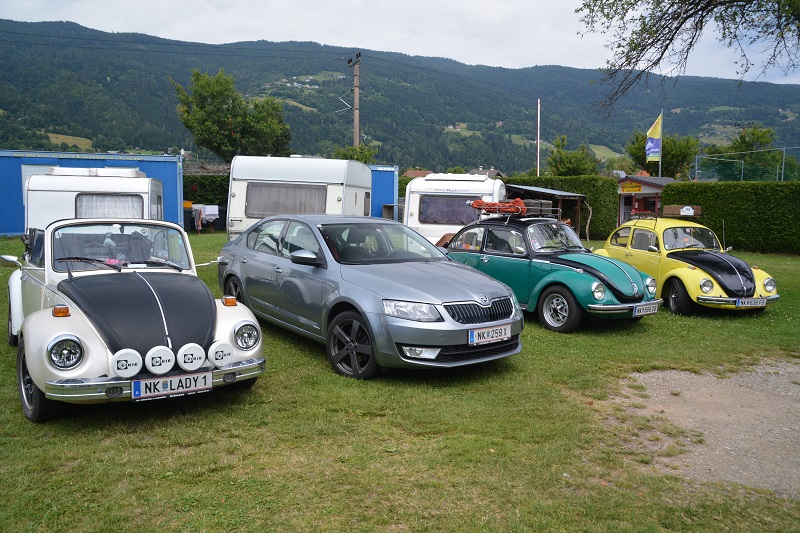 Richard & Hanna, Christine & Toni, Andrea & Hoada besuchten vom 29. Juni bis 01. Juli 2018 das Käfertreffen am Ossiachersee, welches im Zwei-Jahresrhythmus vom 1. VW Käfer Club Kärnten veranstaltet wird. Bild der Anreise, wo an einem Zwischenhalt einige Käferfreunde aus NÖ getroffen wurden. Toni und Christine mit dem Gespann am Campingplatz. Danke für die Fotos (Andrea Haider, Toni Dorfstetter und Richard Piringer)