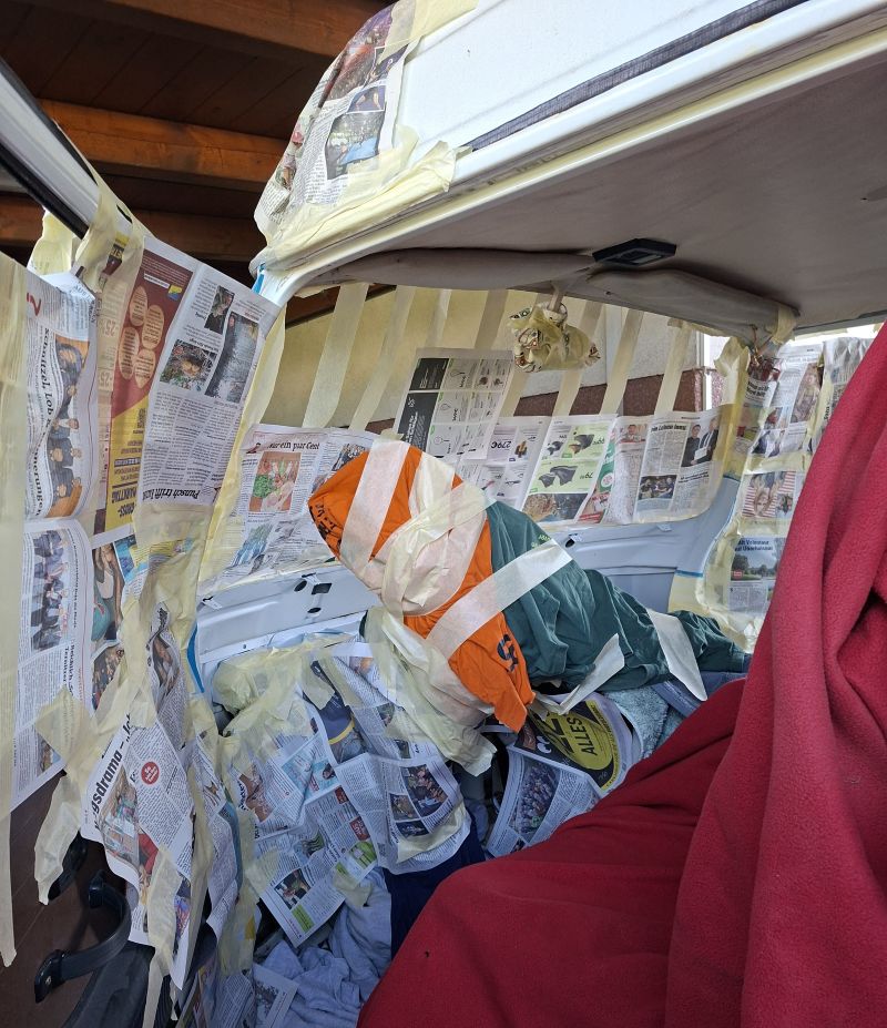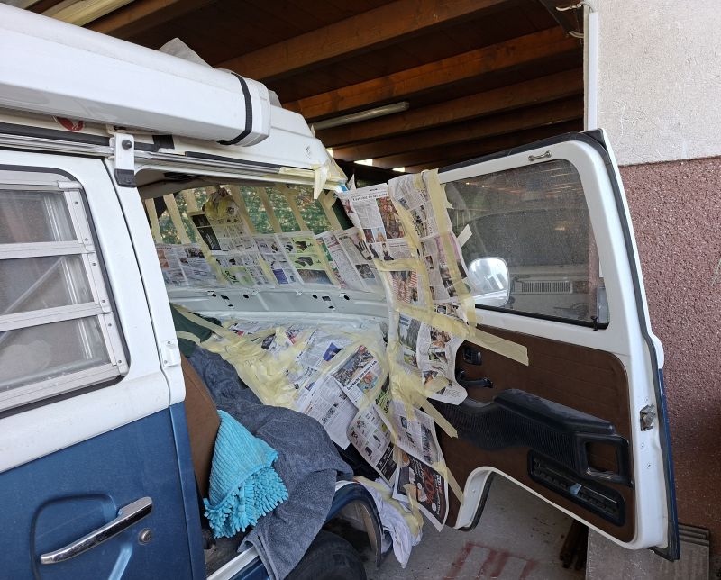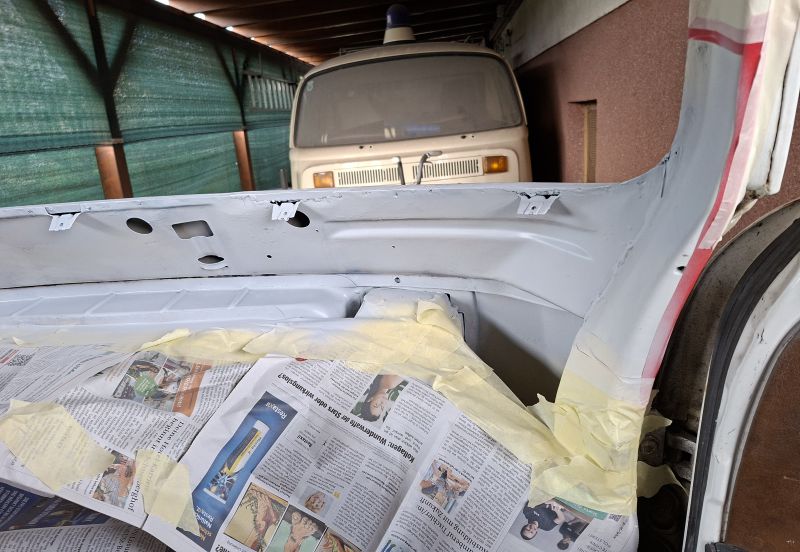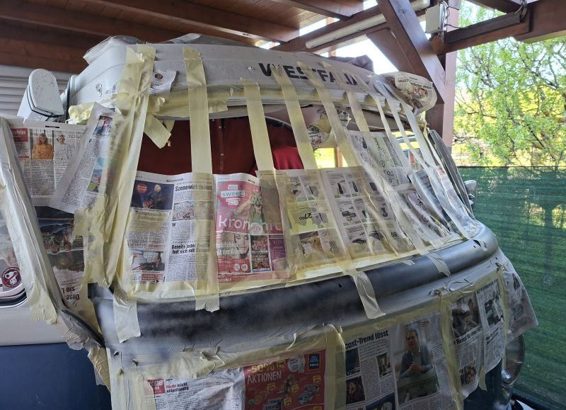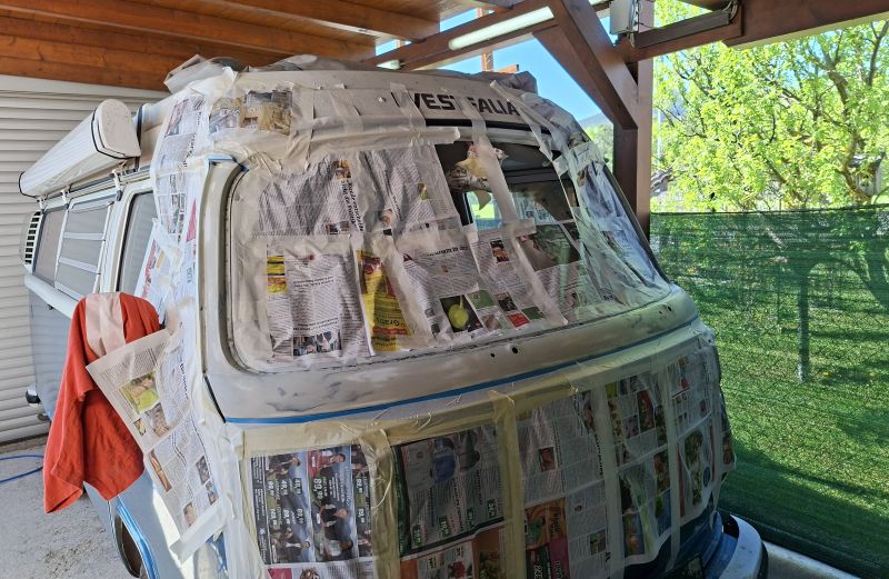Windschutzscheiben-Rahmen-Rep an einem VW Bus T2b ....