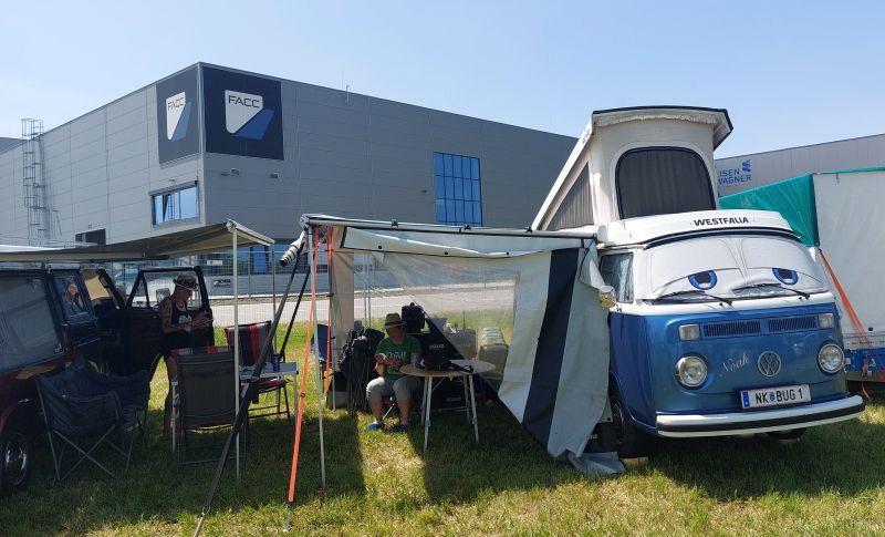 ... in Bearbeitung   Zwei mal KHRT-VW-Busse am Camping "Middle Caravan"